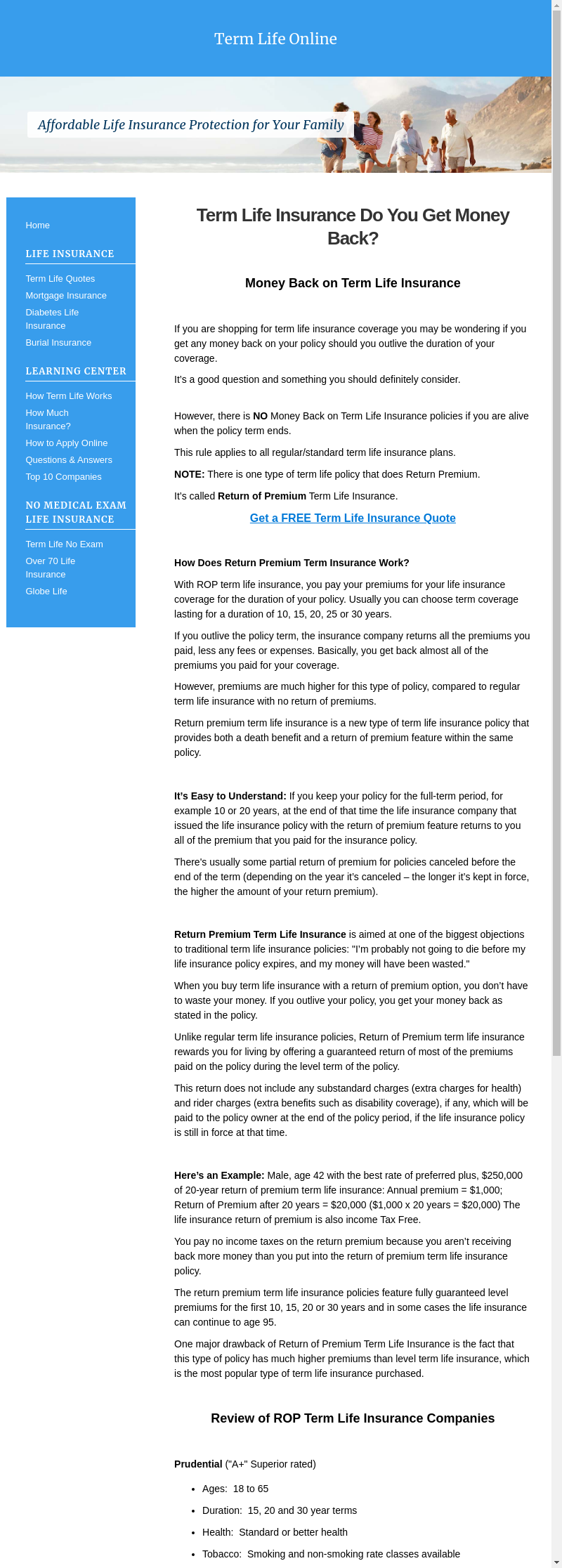 Protection and cash back thats a return of premium term life insurance policy. One drawback of most term life policies is that you dont get back your premiums if you outlive your policy. You want to help protect your loved ones from financial hardship if you cant be there for them.
